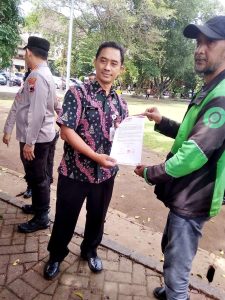 Kepala Dinas Perhubungan (Dishub) Kota Solo – Taufiq Muhammad, didampingi Kepala Satpol PP Kota Solo – Didik Anggono, menemui peserta demo.