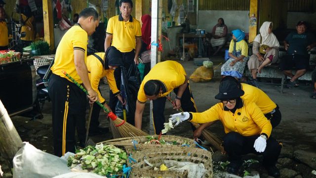 Selain membersihkan area pasar, personel Samapta juga melakukan pendekatan persuasif kepada para pedagang. Mereka mengajak masyarakat untuk ikut menjaga kebersihan sebagai tanggung jawab bersama. Imbauan tersebut disampaikan secara humanis, sehingga para pedagang merasa dilibatkan, bukan sekadar menjadi objek kegiatan.