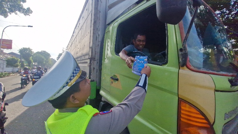 Dalam kesempatan tersebut, para sopir truk juga diajak untuk turut menyampaikan informasi terkait kebijakan pembatasan operasional kendaraan kepada rekan sesama pengemudi, baik melalui komunikasi langsung maupun melalui komunitas atau grup percakapan para sopir.