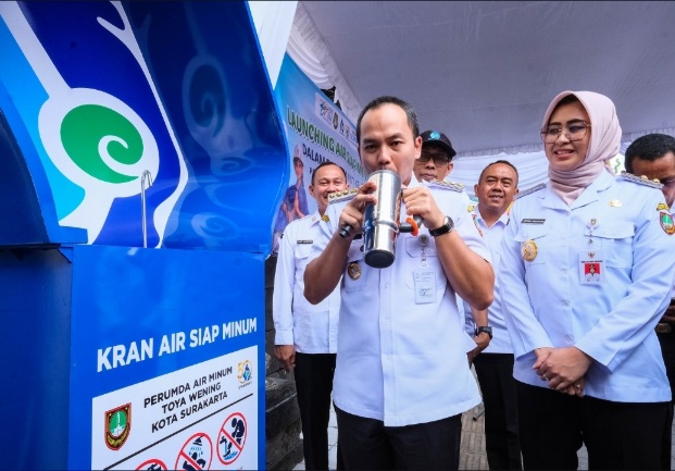 Peluncuran dilakukan di pintu utama Pasar Gede, Rabu (1/4/2026) siang, dan dihadiri langsung oleh Wali Kota serta Wakil Wali Kota Surakarta. Kegiatan ini menjadi bagian dari inovasi layanan air bersih yang kini tidak hanya sebatas distribusi, tetapi juga siap dikonsumsi langsung oleh masyarakat.